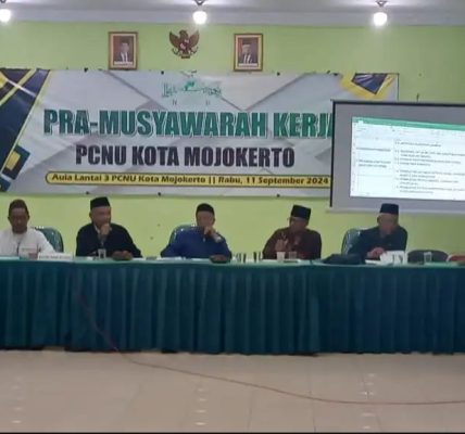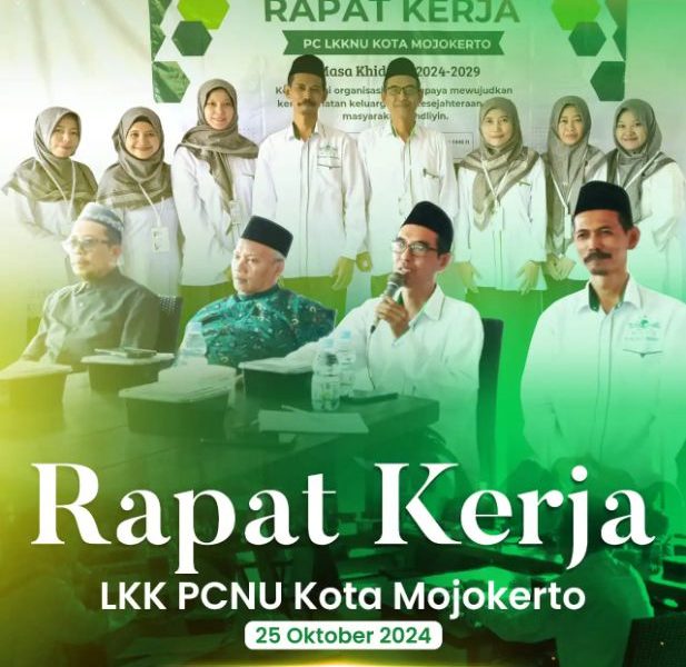 KOTA MOJOKERTO-Pada Jumat, 25 Oktober 2024, Lembaga Kemaslahatan Keluarga (LKK) PCNU Kota Mojokerto menggelar rapat kerja penting di Warung Apung Rahmawati, Genengan, Puri, Mojokerto. Pertemuan ini dihadiri oleh 12 anggota LKKNU dan sejumlah tamu undangan, termasuk perwakilan Ketua Tanfidziyah PCNU, Pembina, dan Penasihat LKKNU. Rapat ini bertujuan merumuskan agenda kerja untuk lima tahun mendatang, 2024-2029.